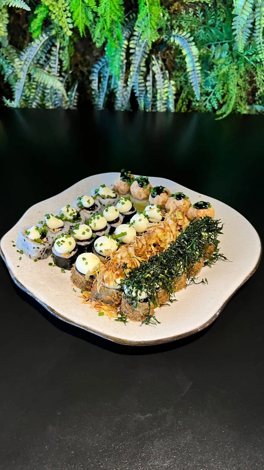 30 peças 5 hot tradicional 5 hot couve 5 joe salmão 5 joe shimeji 5 uramaki salmão 5 uramaki camarão